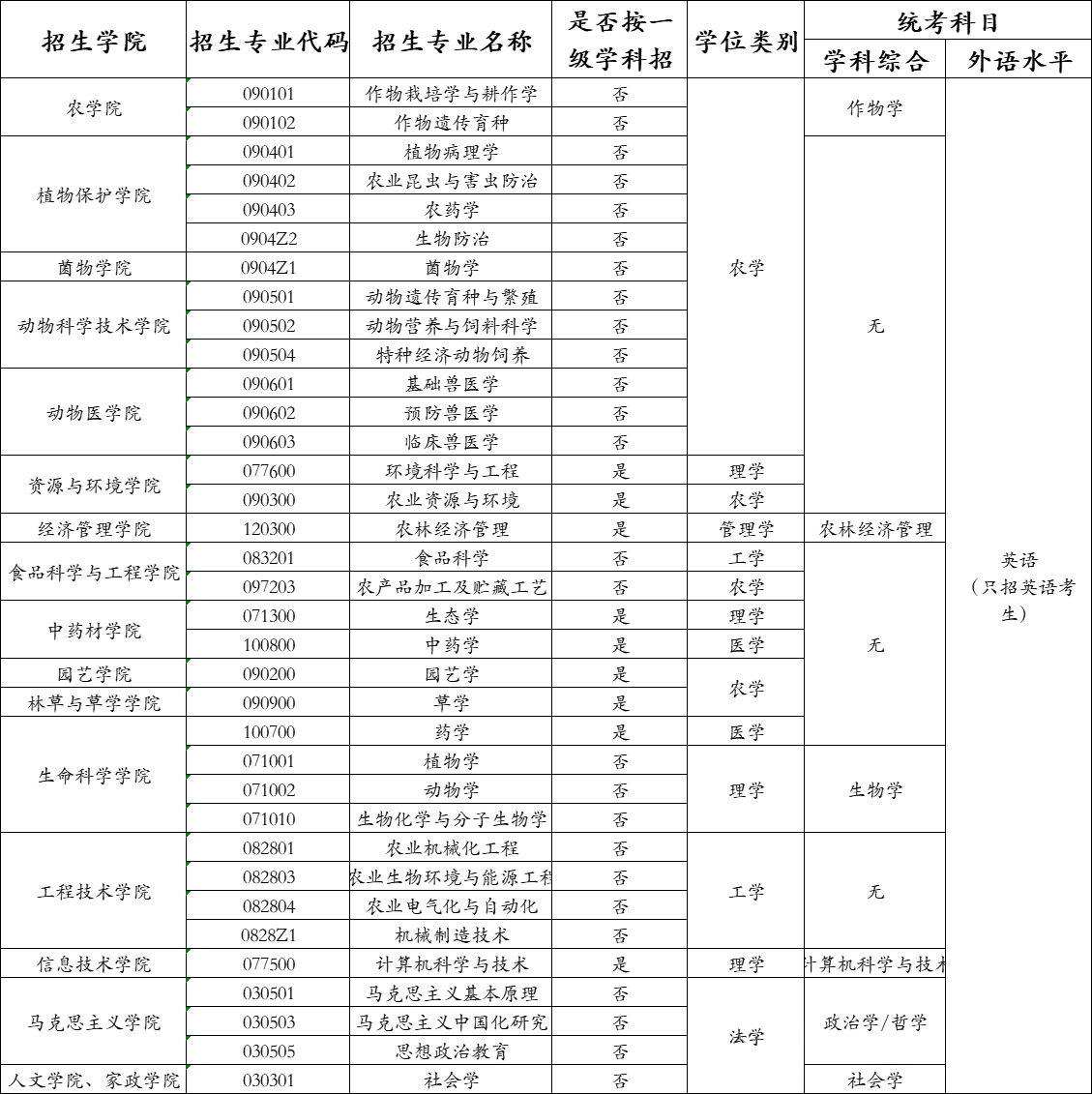 三、招生专业及科目