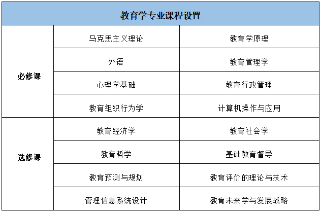 本专业主要是培养具备宽广人文社会科学知识和扎实全面的教育专业知识理论基础,同时拥有强烈社会责任感和事业心的,能熟练掌握教育教学技巧,展开教育教学活动,掌握教育研究的基本方法和知识体系,具有良好的创新意识和学术素养,培养能在教育专业及相关专业教学、研究、培训、管理和服务等岗位胜任工作的应用复合型教育学专业人才。
